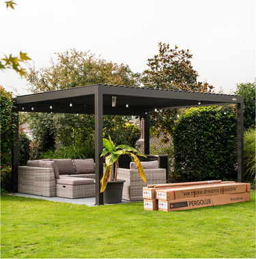 Det är en tidlös utomhuskonstruktion med justerbart tak och valfria väggar, vilket ger dig full kontroll över solljus, skugga, insyn och skydd mot väder. Att äga en PERGOLUX pergola innebär att din trädgård eller altan blir ett verkligt användbart utrymme året runt, och förvandlar ditt hem till den självklara samlingsplatsen för att skapa oförglömliga minnen – oavsett väder.