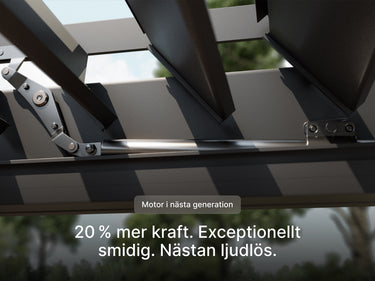 Den är enkel att anpassa, lätt att montera och helt underhållsfri – med motoriserade lameller som ger optimal kontroll över sol, regn och snö.