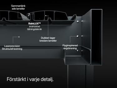 PERGOLUX Skydance S2 Àr svaret pÄ mÄnga av vÄra kunders önskemÄl; lyxig design, integrerad LED-belysning och elektriskt justerbara lameller.